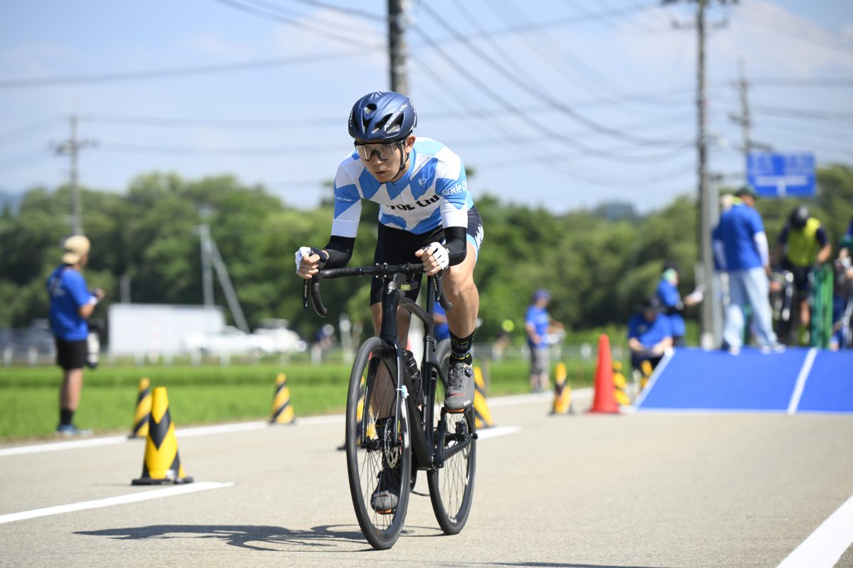 東京大学自転車部に所属し、学連でのレースにも多数出場している長坂和輝さん(20歳、東京大学)。出身は地元秋田の横手市で今回が初出場だ。高校2年生から少しずつ自転車に乗り始め、大学から本格的にレースを始めた。本大会でも世代別6位に入賞。