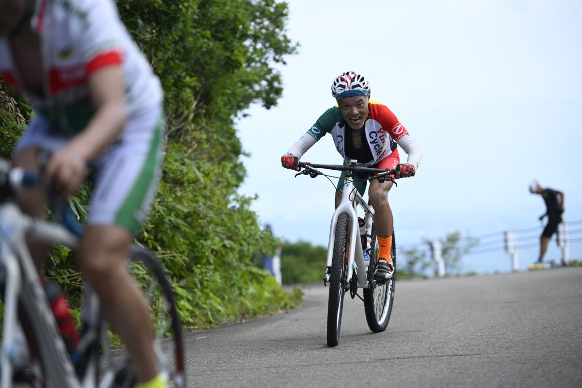 本大会は2日間のステージレース制が特徴だ。もちろんヒルクライムのみ、タイムトライアル(以下TT)のみでの参加も可能。TTへ参加する選手はこの初日から競技が開始される。ヒルクライムなのにTTがあることに驚いていた初参加の編集部坂本だったが、小学生の部やMTBの部もあったりとビギナーでも気兼ねなく参加することができた。