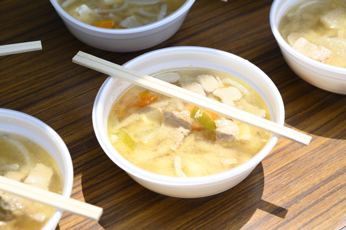 その豚汁をむさぼる坂本。夢中なのが伝わる