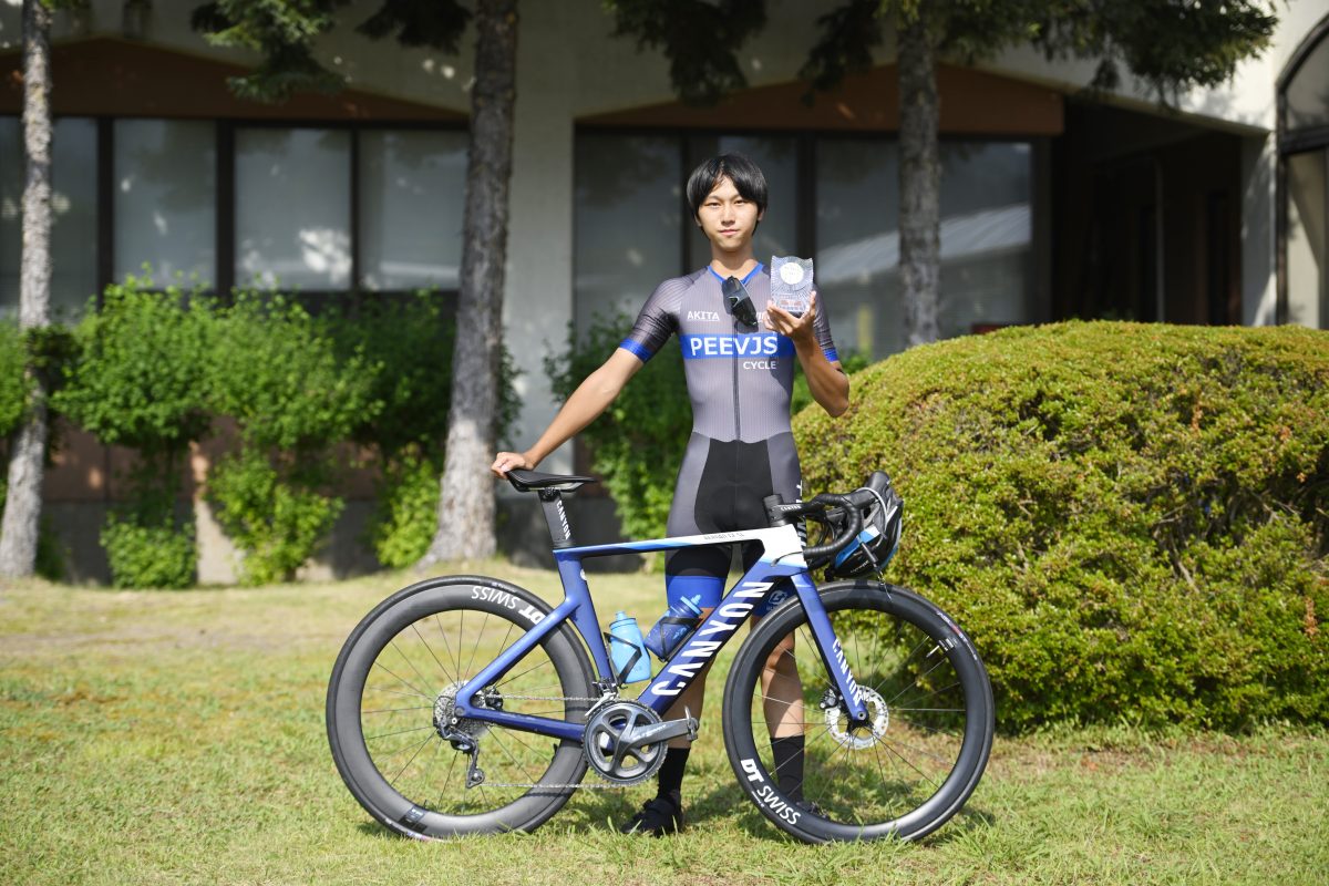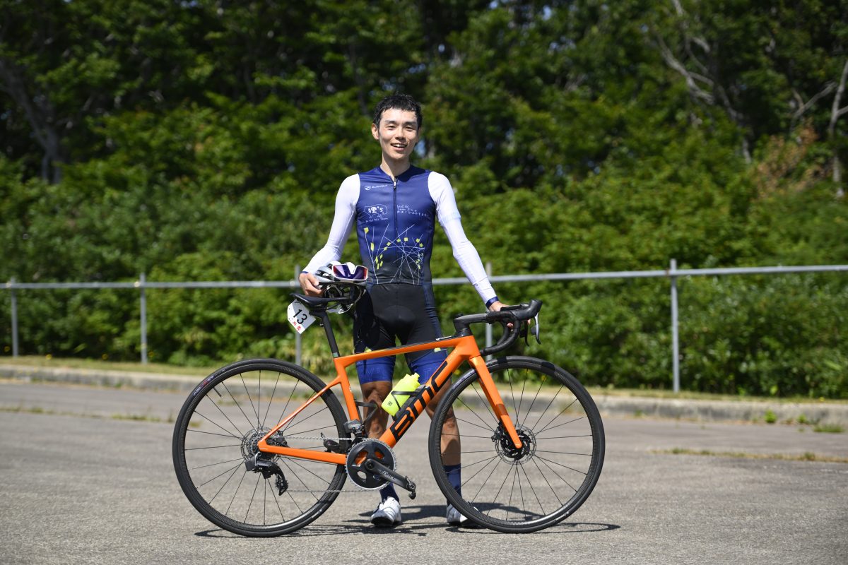 東京大学自転車部に所属し、学連でのレースにも多数出場している長坂和輝さん(20歳、東京大学)。出身は地元秋田の横手市で今回が初出場だ。高校2年生から少しずつ自転車に乗り始め、大学から本格的にレースを始めた。本大会でも世代別6位に入賞。