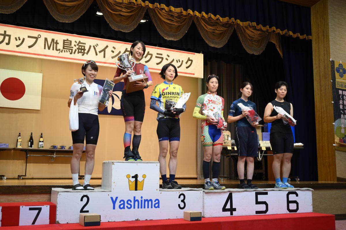 女性の総合優勝も矢島クイーンカップとして争われる。昨年のクイーンを2位に抑えて1位に輝いたのは、神奈川県より参加の向井菜見子さんだ。今回は2回目の出場で、昨年はTTには出場しなかったが今年初めて2日間の総合に挑戦。ヒルクライムでは1時間19分25秒、2日合計で1時間32分54秒という好タイムで2位に約8分の差をつけ見事に優勝した。「好きな大会なので、日程さえ合えば来年も参加します!」とのことで、ぜひ脚自慢の女性は挑戦してみてはいかがだろうか。
