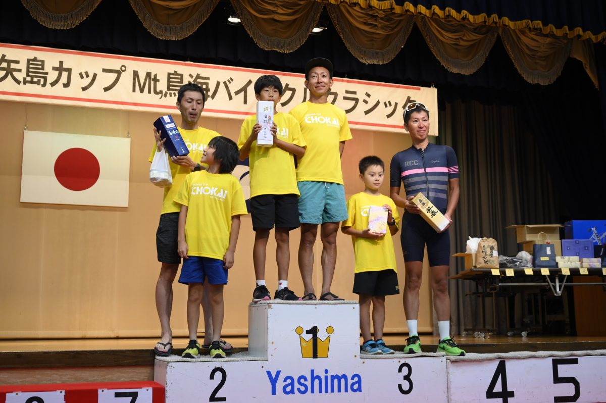 また、個人総合の矢島カップとは別で、親子賞の第1位も目指している。この矢島カップはじつは多くの賞があるが、そのうちの一つが親子賞。初日のTTでの小学生以下のお子さまのタイムと、2日目のヒルクライムにおける親のタイムの合計で競う。今回参加の田崎さんの子である田崎嘉人さんは今年小学校6年生。親子賞を一緒に狙える最後の年齢だ。