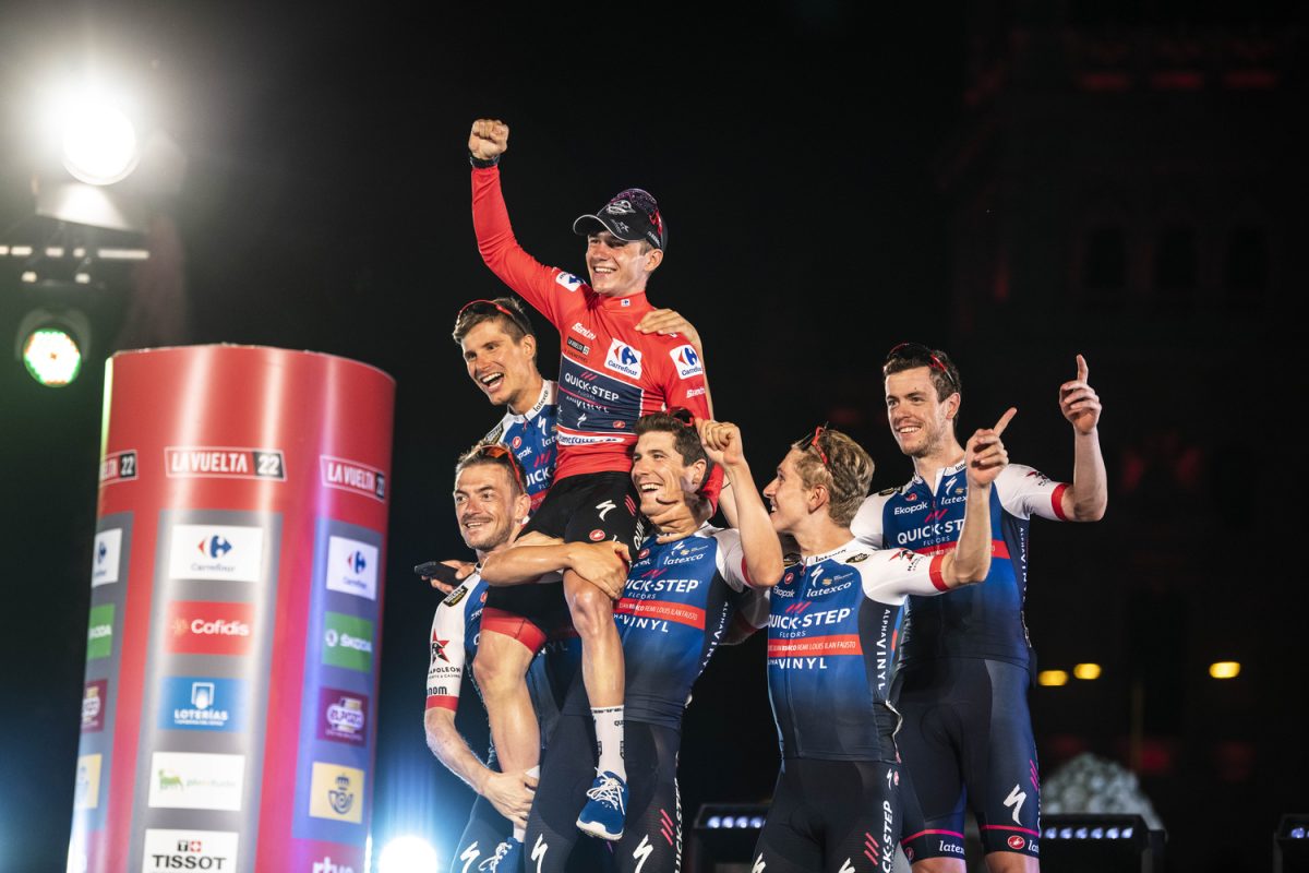 最大栄誉のマイヨ・ロホ争いから見ていこう。前回王者のレムコ・エヴェネプール(スーダル・クイックステップ、ベルギー)が、連覇をかけてスペインに戻る。先のスーパー世界選手権では、ロードレースの王座こそ明け渡したものの、個人タイムトライアルを初制覇。新しいマイヨ・アルカンシェルのお披露目の場がブエルタにもなる。昨年は第6ステージ以降、トップを明け渡すことなく最後まで走り抜いたが、今年はどこで仕掛けるだろう。第10ステージの個人タイムトライアルも、アドバンテージを得るには重要となる。山岳アシストも抜かりなくそろえた今回は、新型コロナウイルス感染で途中離脱を余儀なくされたジロの雪辱戦でもある。