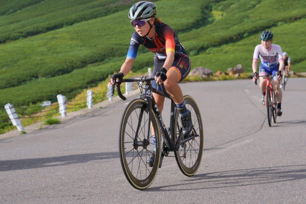 女子クラスは、マスドスタート形式のため、各選手はスタートから基本的に単独走でゴールを目指して標高差1260mを駆け上がった。結果は、1時間5分35秒の女子コースレコードを叩き出した佐野 歩が堂々の連覇。2022年Mt.富士ヒルクライムと乗鞍のダブルタイトルに続き、2年連続の2冠を成し遂げ、新時代女王の存在感を強く知らしめた。2位には、1時間7分台の好タイムで木下、3位に三島が入った。女子クラスは上位5人が1時間9分台を記録した。