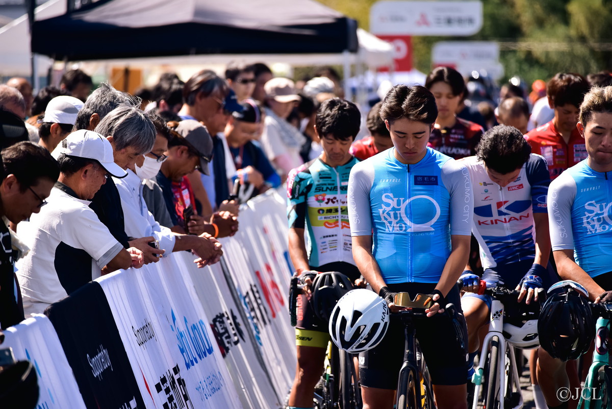 スタート前には先日のツール・ド・北海道で亡くなった五十嵐選手への30秒間の黙祷を捧げ、安全を胸に誓いスタートラインに並びました。