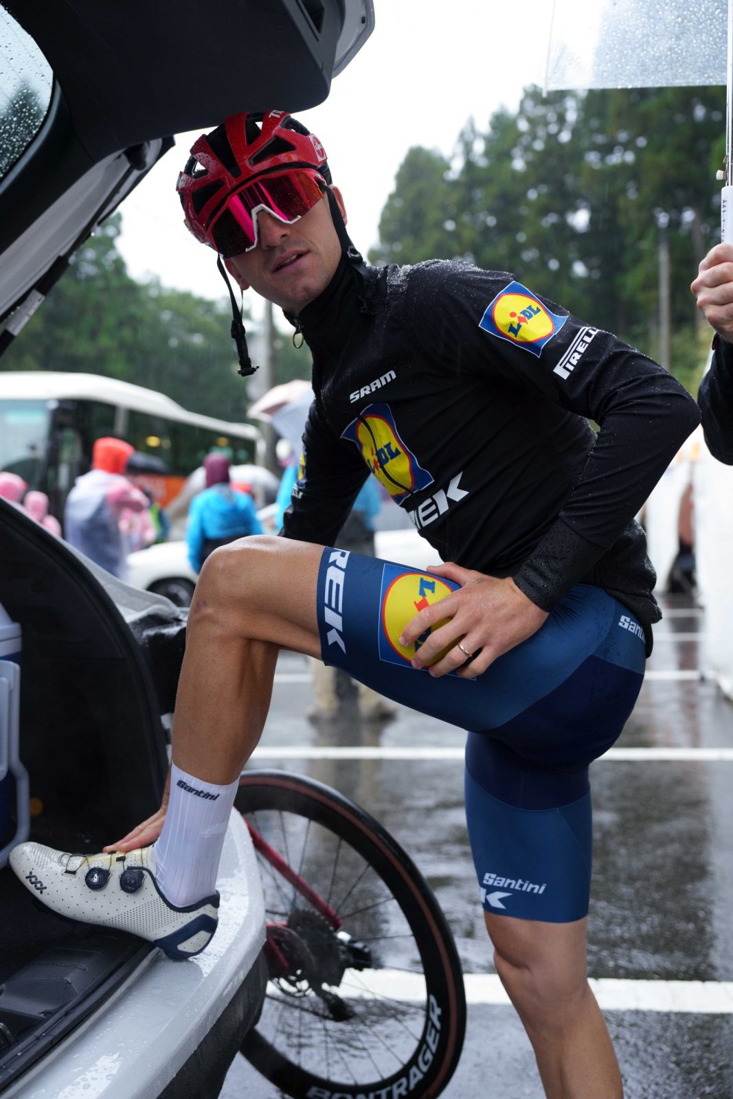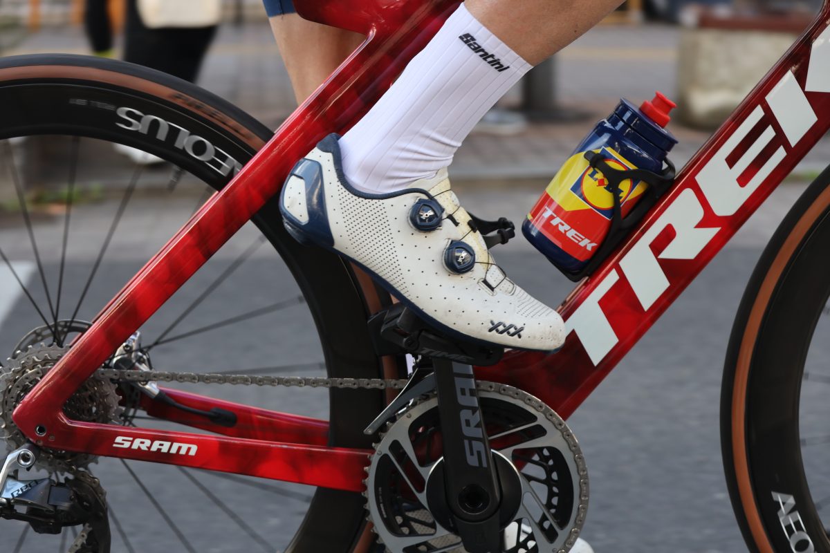 チッコーネはボントレガー XXX ロード サイクリング シューズを履いていた。このシューズはOCLVカーボンソールと通気性の高いTPUアッパー素材から作られている。足にフィットしながらも快適さをキープするフォームTXレースシステムや、滑りや擦れから足を守るヒールカップなど、端部までこだわった設計が特徴だ。剛性指数は14と非常に高く、ペダリング効率も抜群だ。