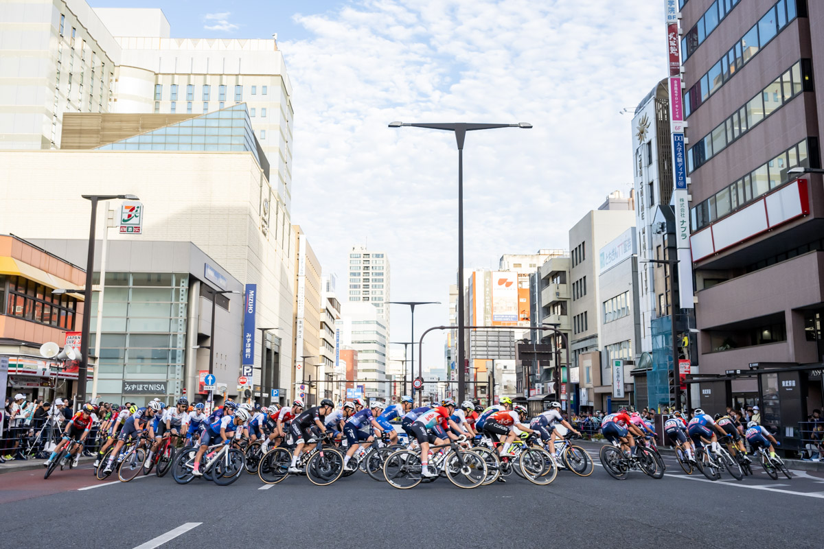 前日のチームプレゼンテーションで一層温まった宇都宮の自転車熱は、クリテリウムでボルテージが上がる。12回目となる今回も、宇都宮市大通りを用いて2.25kmの周回コースを設定。これを15周回・33.75kmで競う。宇都宮市の根幹ともいえる大通りを使ってレースするとあり、途切れることなくファンが沿道を埋め尽くした。