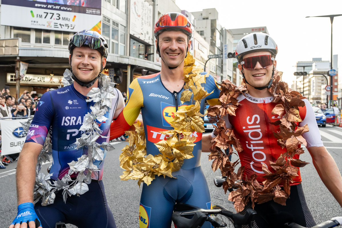 新型コロナ前の2019年、復活開催だった2022年に続く、3回目のクリテリウム制覇。大会中止となった2020年と2021年をはさみながらも、3連覇を達成。これまで2連覇した選手はいたものの、3連覇となると史上初。誰も手の届いていなかった領域に到達した。