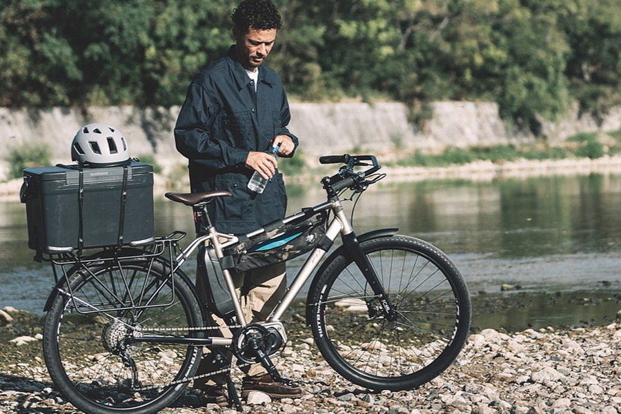 グラベルバイクとして名高いJARIのフレームをベースに作られたE-MIDTAILは、シマノSTePSシリーズ最軽量のE5080シリーズを採用しJARIさながらのグラベル走行性能を誇る。また、バッテリーをシートチューブ裏に設置することでフロントトライアングルの自由度が確保され、フレームバッグをはじめボトルなどのギアを装着できる選択肢も多い。車体には最大で5つのボトルケージが装着可能で、やや長めに取られたリアセンターが高い直進安定性をもたらしているミッドテール設計は、専用リアキャリア(別売)を装着することによりさらなる積載性が付与できる。ドライブユニットを保護するプロテクトステー「EXTERNAL PRO」に加え、マルチポジションハンドルを採用したことで悪路/長距離走行も苦にならない。電動ユニットにはアップデートされたシマノSTePSシリーズDU-E5080Hをセットし、あなたを幅広いフィールドへ誘う盤石のマルチパーパスeバイクとなった。