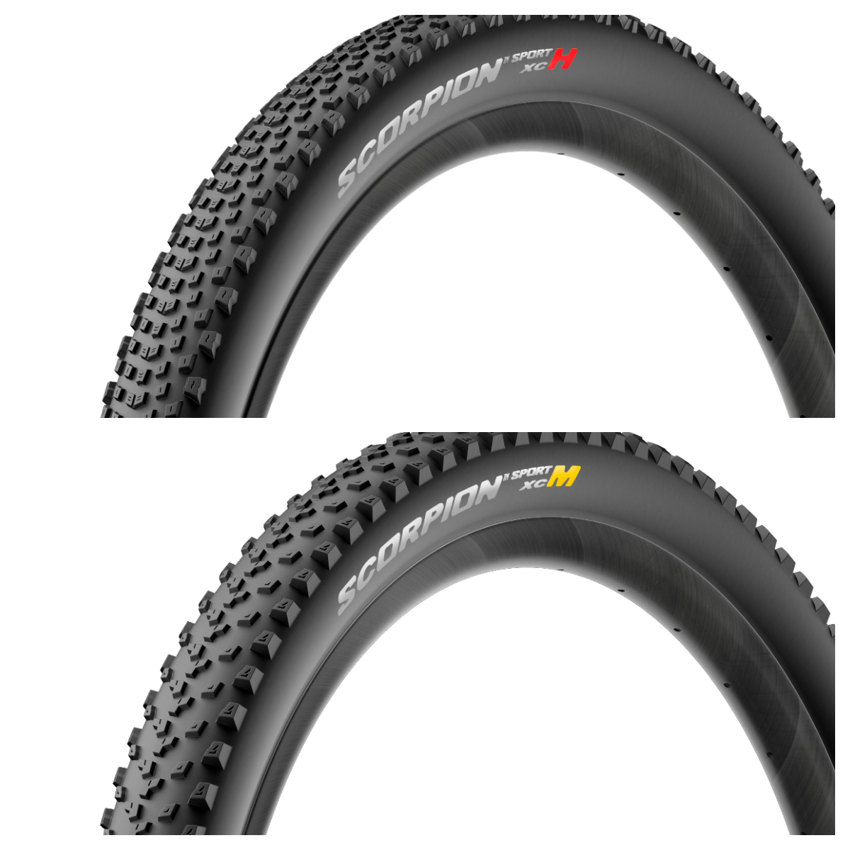 同シリーズは2モデル展開。Scorpion Sport XC Mは、あらゆるライディングスタイルに適した “オールラウンダー”として。いっぽうScorpion Sport XC Hのブロック配置と形状は、ハードパックや高速で走行できる路面に対処するために作られている。