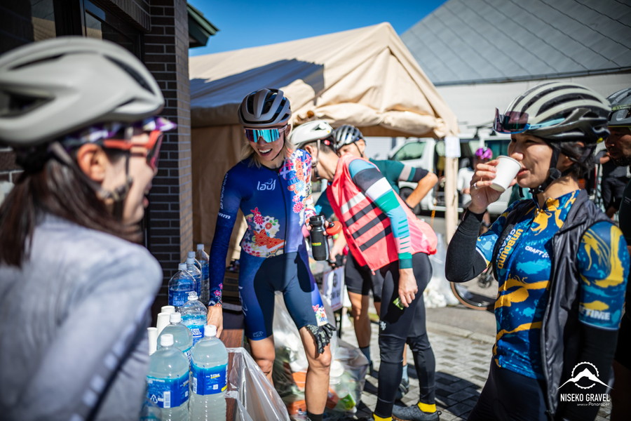 ニセコグラベルは毎年進化を続けている。今回はコースクリエイトの時点で昨年よりもひとつひとつの区間をもっと長めにとれるようにして、グラベルと舗装路のメリハリをよりつけられるようにしたという。加えて、参加者のフィードバックも生かしている。昨年は終盤にかけてグラベルの激坂に心折れる参加者も結構いたが、今回は獲得標高こそ変わらないものの、レイアウトの工夫でだいぶ印象が変わった。きつい区間はもちろんあるが、そのタイミングや適度に設けられたエイド、その後のコースレイアウトの工夫で飽きずに走り続けることができた。