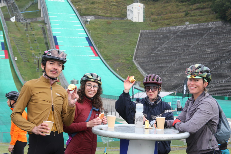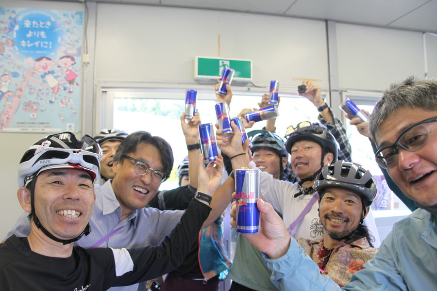 メインライド当日。7時からスタートだが、その前に朝食が配られるのでそれに合わせて6時過ぎくらいから徐々に参加者が集まり始める。朝食として配られた地元の食材を使ったおにぎりがおいしい。