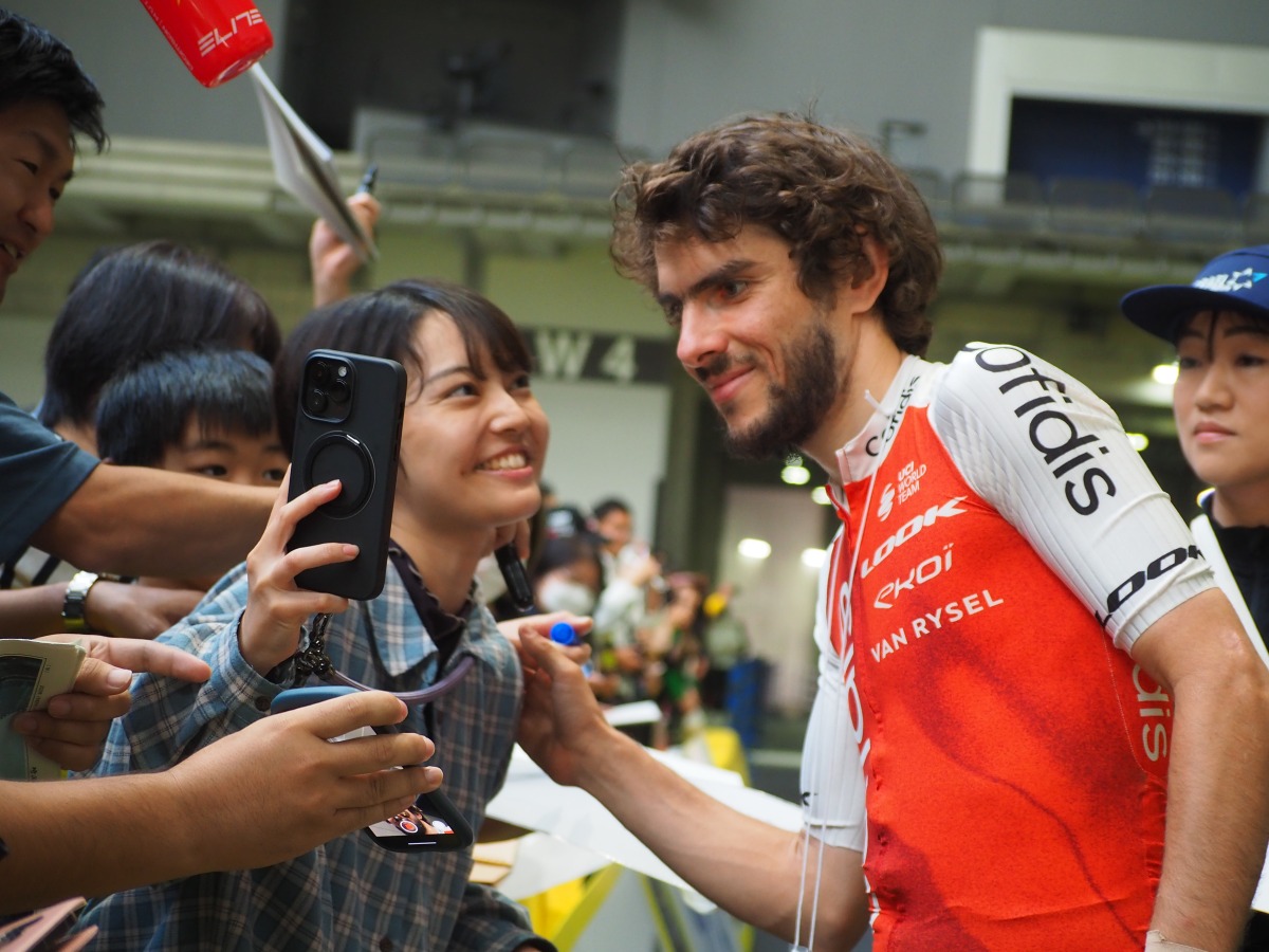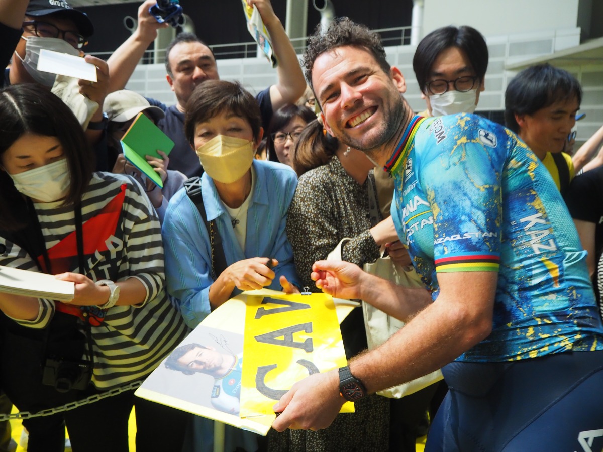 ステージイベント前にサイクルフェスタ内で子どもたちと触れ合い、イベント会場に着いてからはファンの元へ行き、ずっとサインとセルフィーを繰り返す。その後ステージに立ったら積極的に笑いを取りに行く。これが編集部員の見た11月4日のカヴェンディッシュの姿だ。その間とにかく笑顔で、かなりさいたまクリテリウムを楽しんでくれている印象だ。
