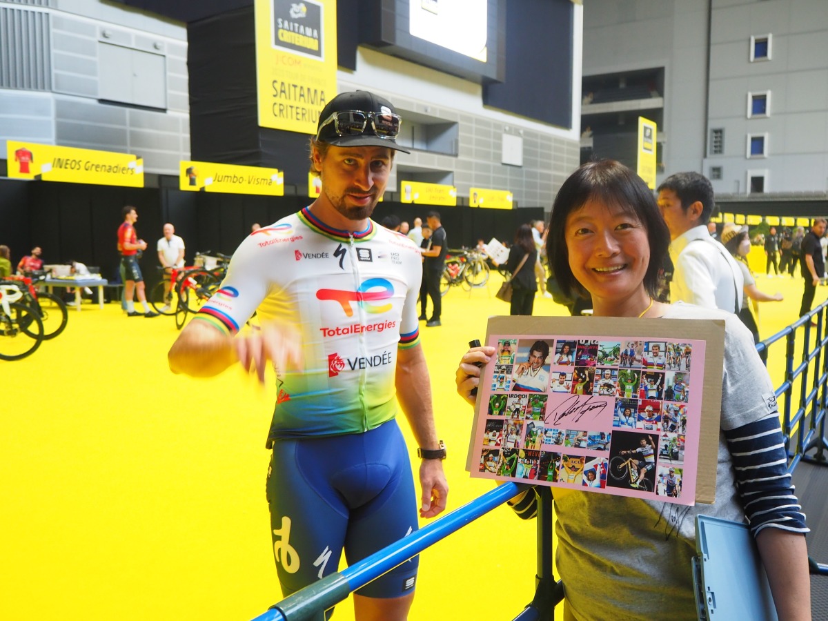 明日はツール・ド・フランスさいたまクリテリウムの本番、激しい勝負が繰り広げるレースだ。選手たちの真剣な表情と今回のようなファンへの笑顔、その両方を楽しめるはず。