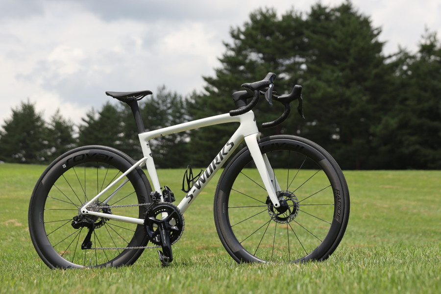 アッセンブルも隙が無く、標準でパワーメーターがついたスラムのレッドeタップ組み。ホイールも最初からロヴァール・ラピーデCLXⅡチューブレスレディが装着されており世界最速のフレームの走りを支えている。ヘッドセットもロヴァール・ラピーデコックピットを装備し軽量化に貢献。公称重量は本誌のスラム組みで6.8kgのほか、シマノ・デュラエースDi2組みで6.6kgを実現した。