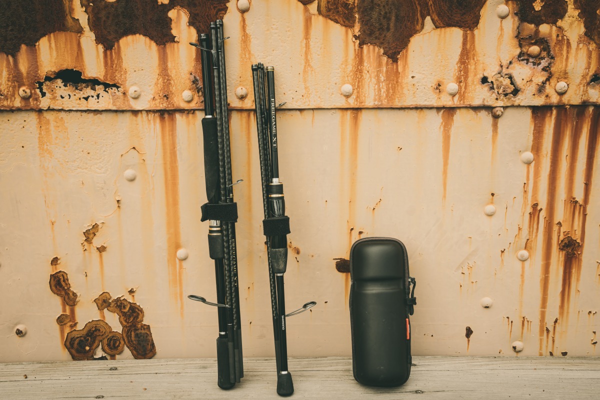 今回使用したロッドは、シマノの旅用パックロッドシリーズの〈フリーゲームXT〉。小俣はS76M、木下さんはS610L-Sをそれぞれ使用。ルアーから投げ釣り仕掛けまで幅広く対応してくれるので何が釣れるかわからない釣行時に重宝する。今回はバックパックに入れてライド時に持ち運んだ。