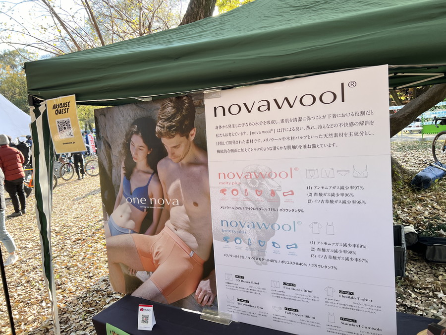 独自に開発したNOVA WOOLを用いたアンダーウェアブランド「one nova」。