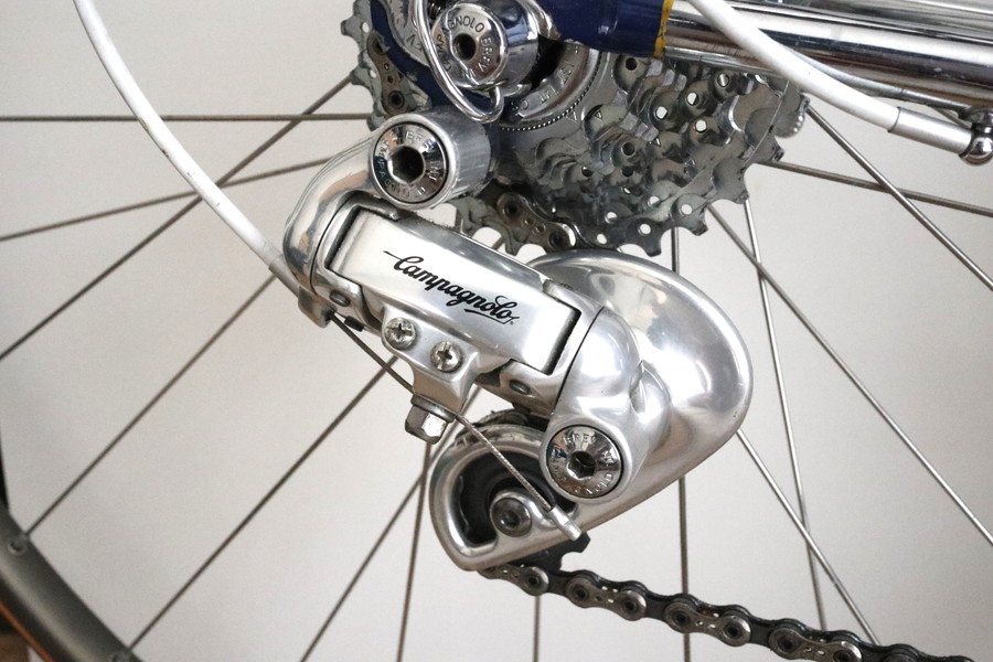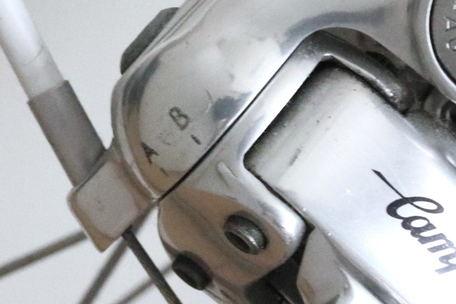 70年代初期のメカで、自転車健康ブームに沸くアメリカ市場向けにカンパニョーロが無理をしてゴテゴテギラギラに作ったところが、時代を経ると逆にイタリアっぽかったりする。