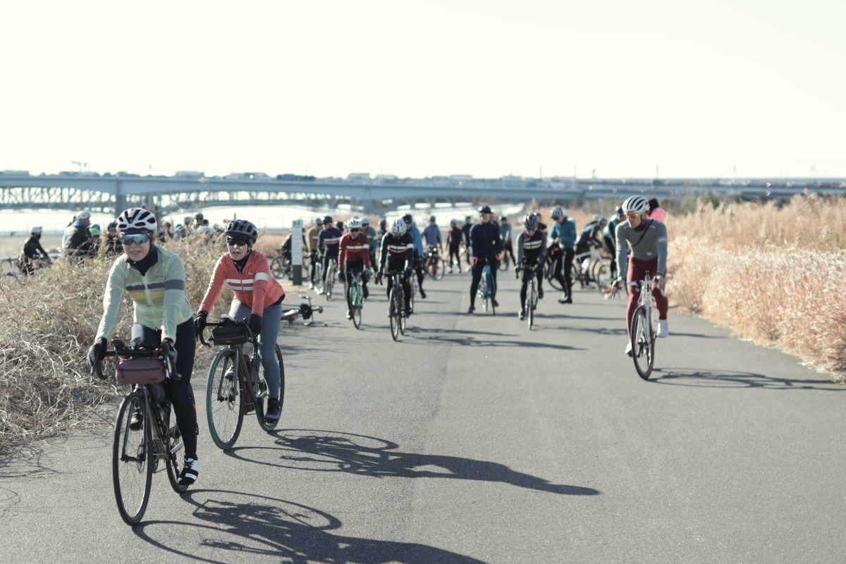1月27日、東京・荒川の河口付近新砂リバーサイドステーションには50人弱のサイクリストたちが集まっていた。募集情報を見て集まったライダー、そしてRCC(ラファサイクリングクラブ)のメンバーだ。チャリティーライドの責任者、三井裕樹さんの説明があり、募金を集め各ライダーたちは点々とスタート、各々に目的地、岩淵水門を目指した。