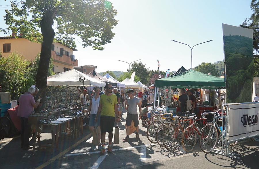 エロイカ的自転車は日本だとお宝のイメージがあるが、こちらでは身近なお古のようなもの。ベテランには懐かしく、若者にはお手頃。なので機材という面では、イタリアでは、じつは敷居が低い自転車イベントという特徴もある。