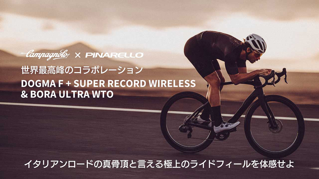 INEOS GRENADIERSの愛機“ピナレロ DOGMA F”×コンポーネントの最高峰“カンパニョーロ SUPER RECORD Wireless”×カンパニョーロホイールのフラッグシップ “カンパニョーロ New BORA ULTRA WTO”。世界最高峰のパフォーマンスをご自身でお確かめください。
