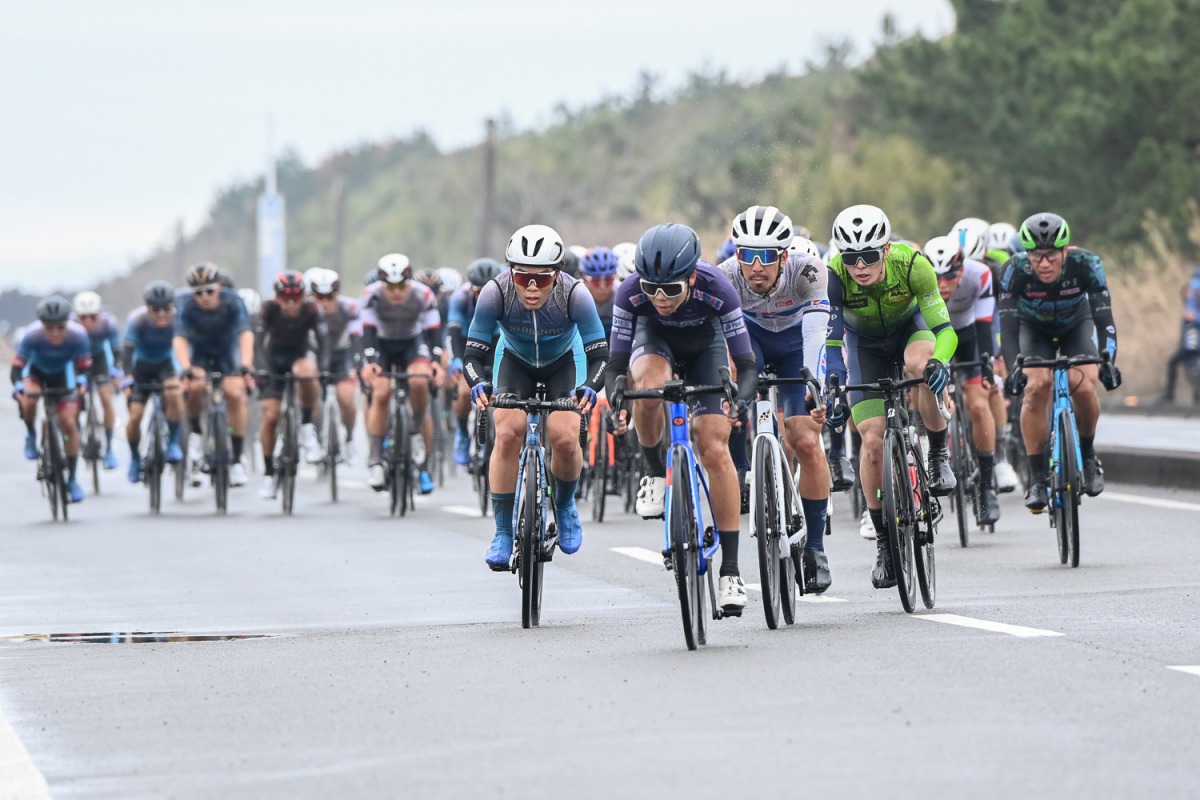 続いて25日に行われたのが志布志クリテリウム。大隅半島東側の志布志湾に面する志布志しおかぜ公園がスタート・フィニッシュ地に。L字に設定された1周2.9kmのコースを採用し20周回・58kmで争われた。全体的にはフラットなレイアウトだが、2カ所ずつのヘアピンコーナーと鋭角コーナーをどうクリアするかがポイントとなる。