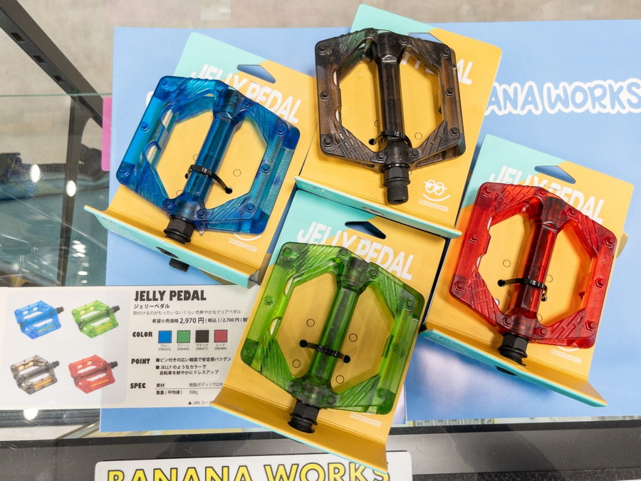 取り付けるのがもったいないほど色鮮やかなクリアペダルがブルー、グリーン、ブラック、レッドの4色で登場。ジェリーのようなカラーで自転車を鮮やかにドレスアップすることができます。
