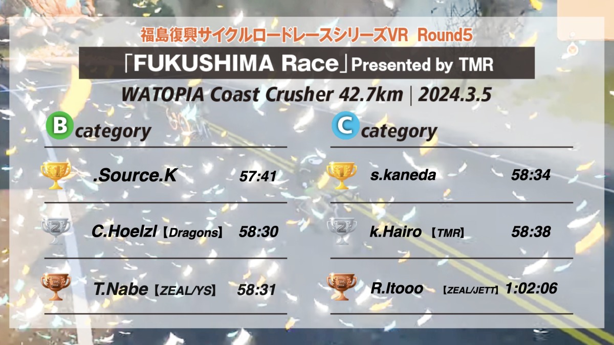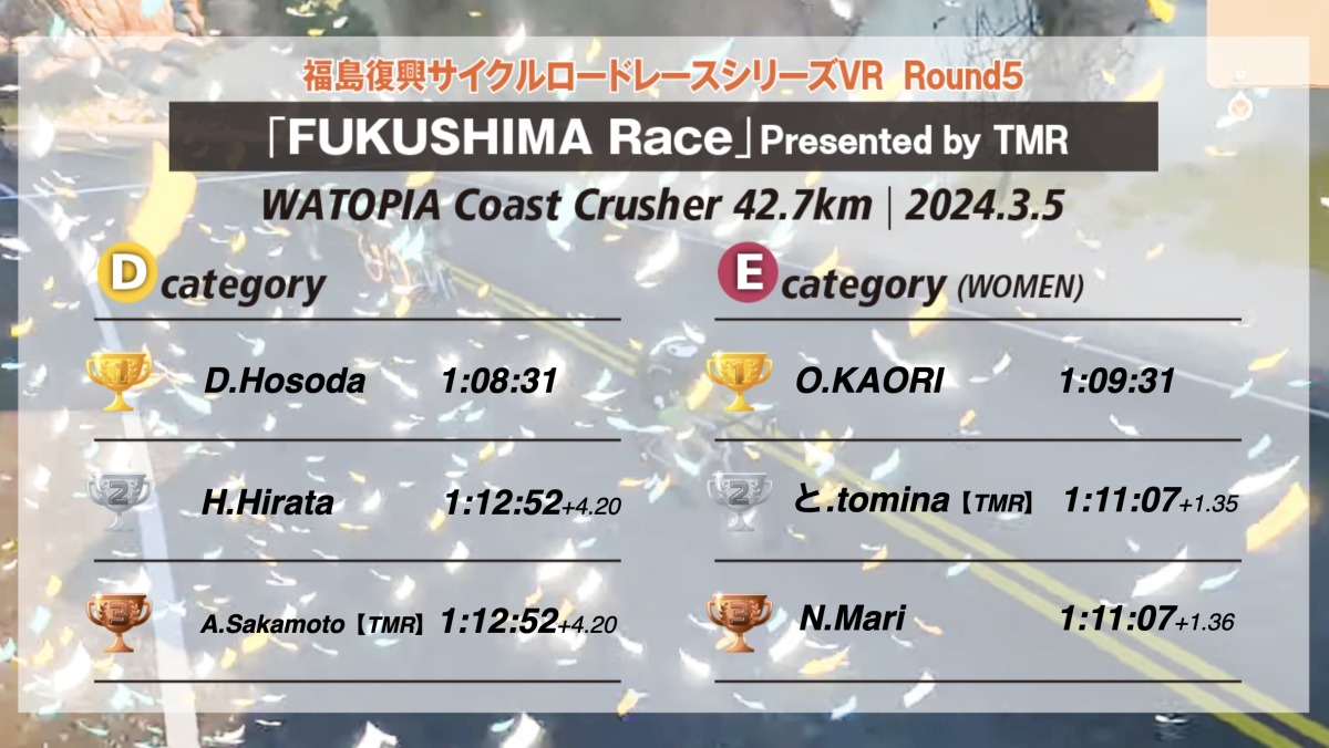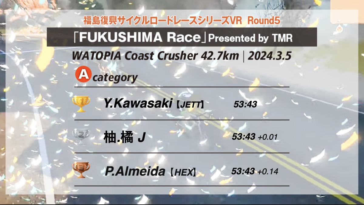 福島復興サイクルロードレースシリーズ・バーチャルレース:Round5「福島レース」Presented by TMRレポート
