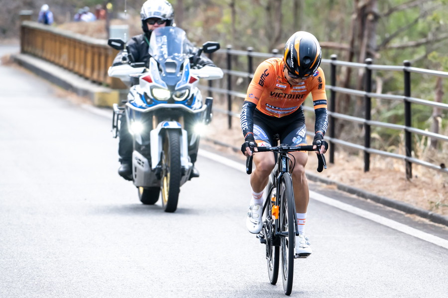 久保田は後続の4名に対して15秒程度のタイム差で逃げ続けるが、3段坂で追走に吸収される。