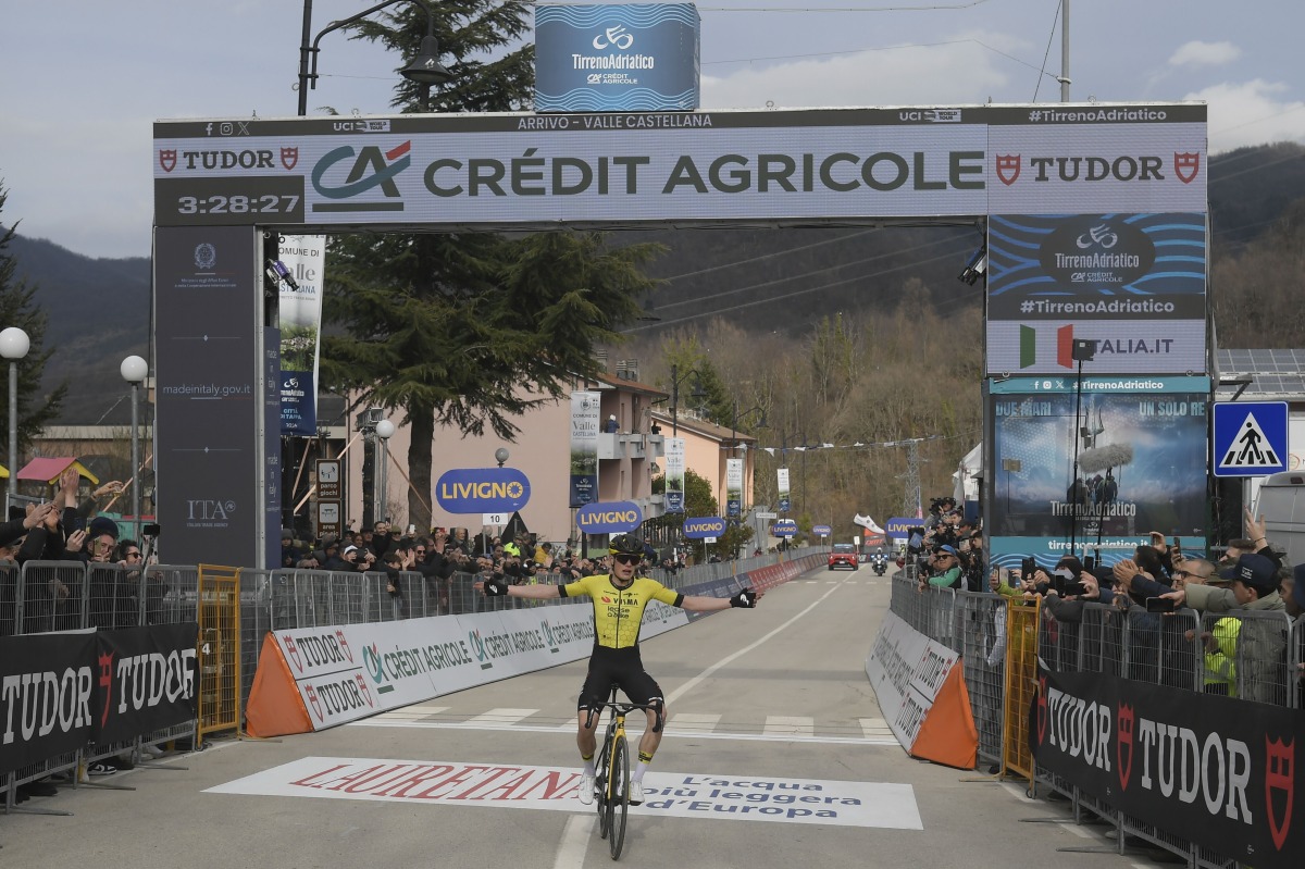 ティレニア海からアドリア海まで、2つの海をつなぐステージレース「ティレーノ~アドリアティコ」。今年は3月4~10日の会期で催され、海の王者を表すトロフィー“トリアイナ”をかけて戦いが繰り広げられた。個人総合争いは後半ステージに集約され、2つの本格山岳ステージでヨナス・ヴィンゲゴー(ヴィスマ・リースアバイク、デンマーク)が圧倒的な強さを披露。2位以下に大差をつけて初優勝を果たした。