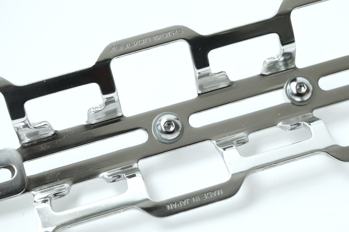 カーゴケージの材質は競輪(NJS)認定ペダルSUPREMEの側板と同一素材の軽量高強度なA2017ジュラルミン。長年培われてきたペダルの側板プレス加工技術を応用した精緻な作りはメイドインジャパンの気概を感じさせるワンクラス上の仕上がりとなっている。