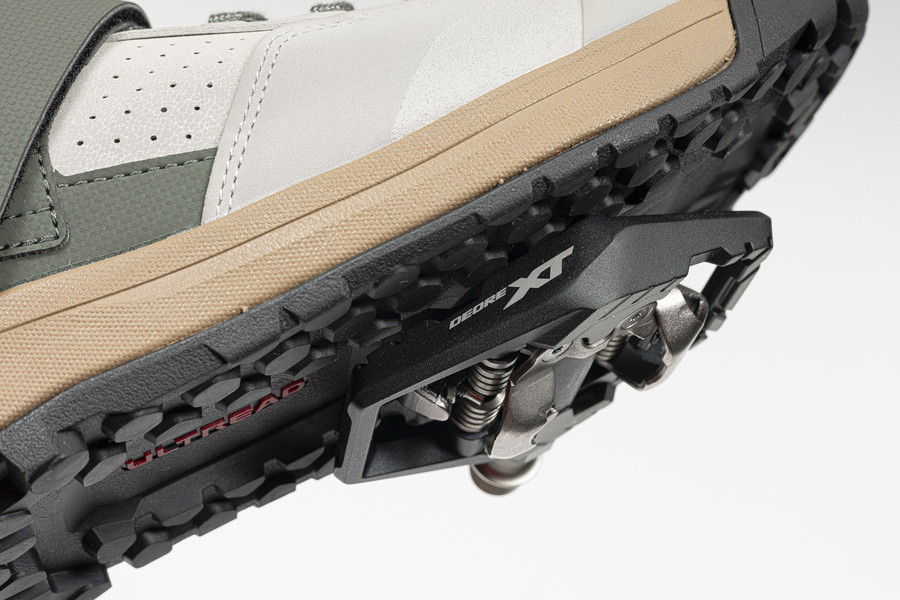 松井:アウトソールには「ULTREAD(アルトレッド)」と呼ぶ自社ブランドを使っています。2021年に導入したソールテクノロジーで、シマノの多種多様なオフロードシューズに使われています。GEには「ULTREAD GE」、GFには「ULTREAD GF」を用意しています。