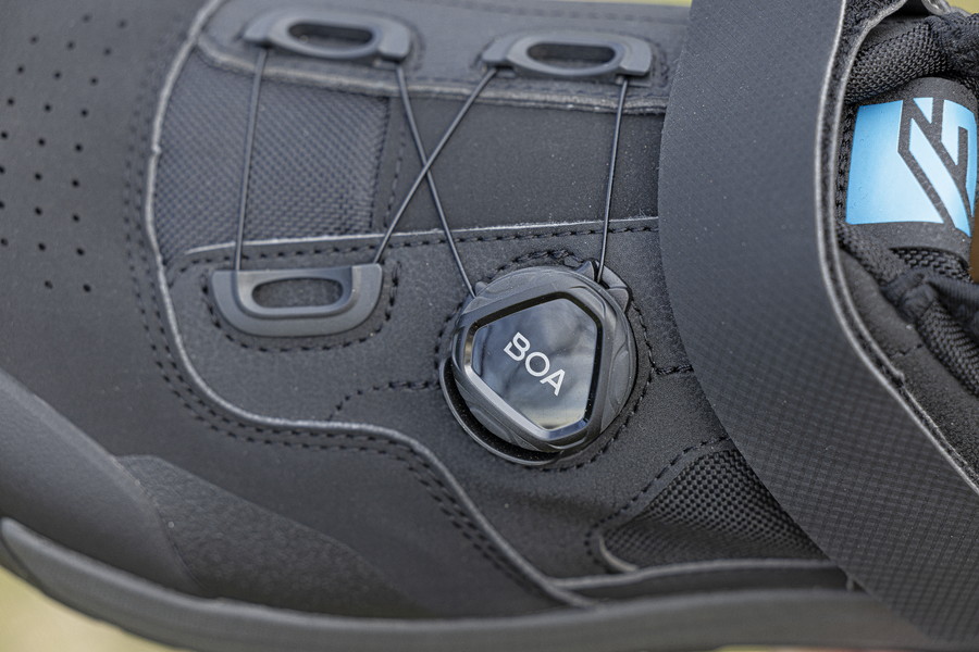 シールド付きBOAダイヤルを装備したハイエンドモデル。ミッドソールはカーボン製で高剛性、リエゾン(移動)区間やクライミング区間でのより効率的なペダリングをサポートする。