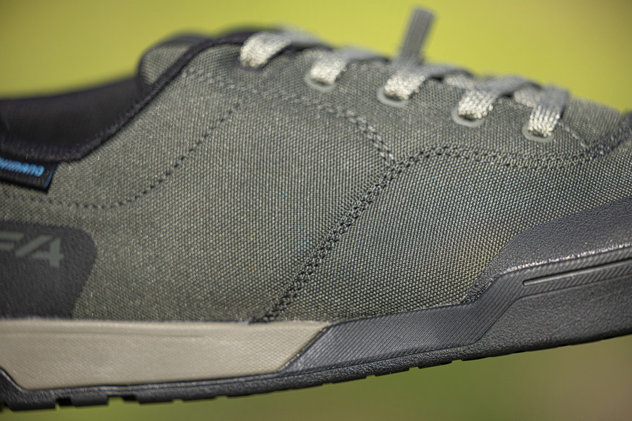 松井:フラットペダル用なので、アウトソールにペダルのピンが刺さったときに、そのピンを捉えて離しにくくするような低反発特性のあるラバーコンパウンドを使っています。ただ、ピンが刺さることによりアウトソールはダメージを受けてしまいますので、低反発でありつつ耐久性にも優れたバランスのいいものを開発しました。