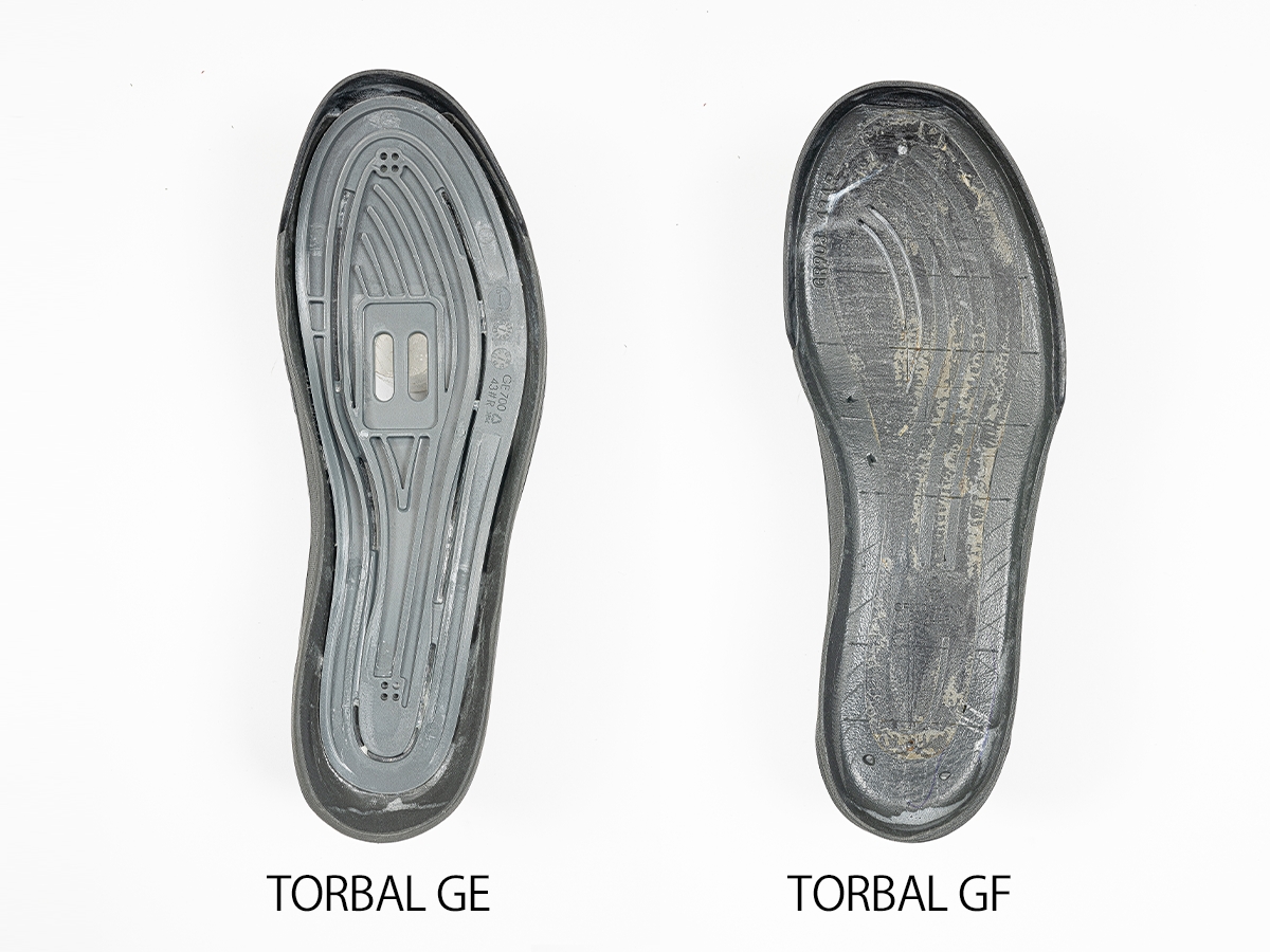 不安定で揺さぶられる路面でも高いペダルグリップ力を発揮するGFシリーズ。特別配合のラバーコンパウンドと六角形のトレッドパターンを採用したULTERAD GFと、コーナリング時にソールを変形追従させて反応の遅れを吸収するような味つけのTORBAL2.0を採用する。
