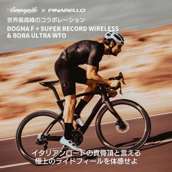INEOS GRENADIERSの愛機“ピナレロ DOGMA F”×コンポーネントの最高峰“カンパニョーロ SUPER RECORD Wireless”×カンパニョーロホイールのフラッグシップ “カンパニョーロ New BORA ULTRA WTO”。世界最高峰のパフォーマンスをご自身でお確かめください。