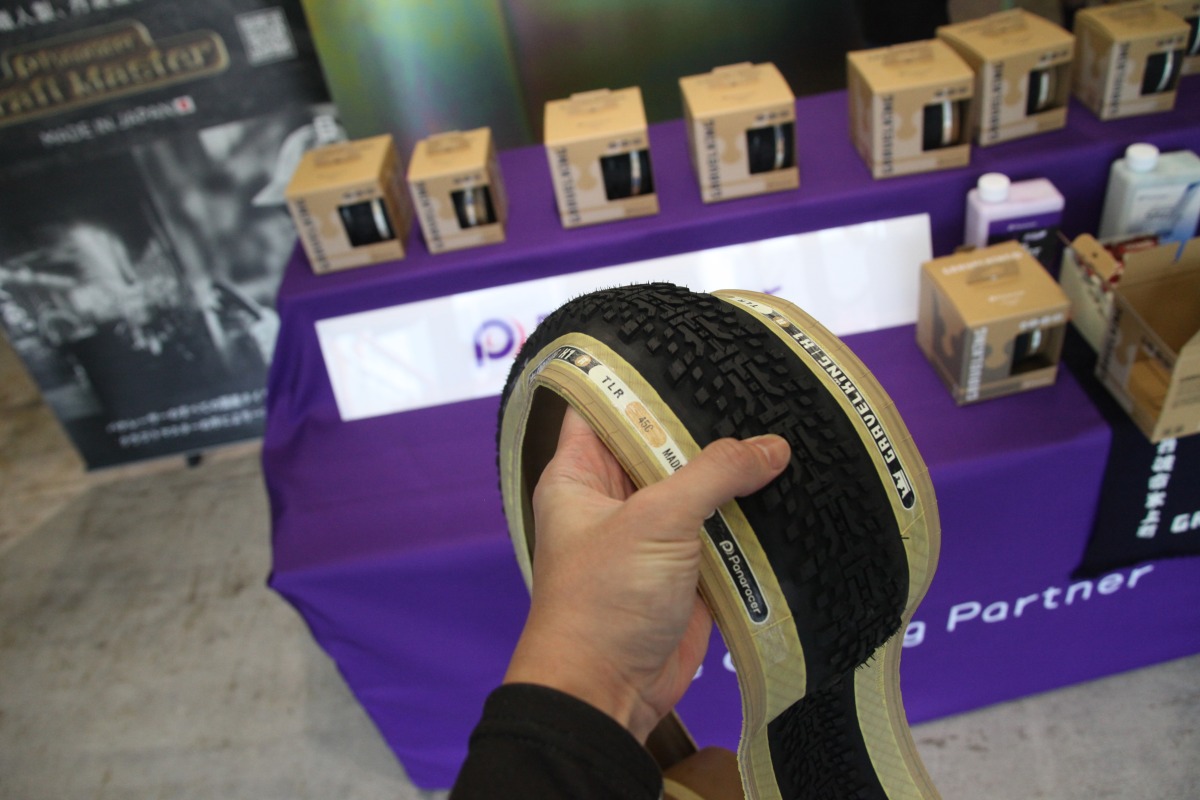 聞くと、このタイヤの開発に深くかかわっているのがパナレーサーの佐藤さんだ。佐藤さん? 佐藤さん……思い出した! 昨年アンバウンドグラベルの会場で一緒になり200マイルを完走した人だ。彼も相当に泥に苦しんだと聞いた。どうも“苦しみ”は人だけじゃなくプロダクトも成長させるらしい。