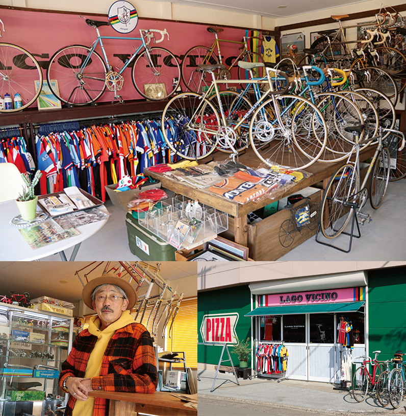 山中湖畔で週末営業していたが、今年2月に東大和の狭山湖近くに移転。ヴィンテージバイクほか古着ジャージ約400着を見て選べる。春には併設したピザ屋もオープン