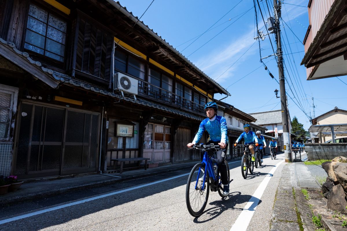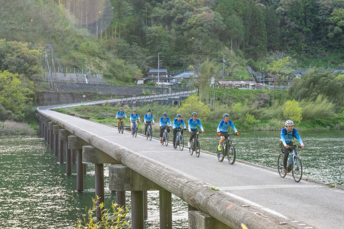 今回のトライアルライドはサイクルバスを使って移動、実地調査ではサイクリングにおける走行環境や見所、各県境を中心にそれぞれ20~40kmほどのコースを走った。ライドにはeバイクを使うことでサイクリストだけではなく、より幅広い層へ向けたツアーをイメージしており、従来のペダルバイクでは上りにくい坂を経験、高所からの景観を楽しめることも検証した。