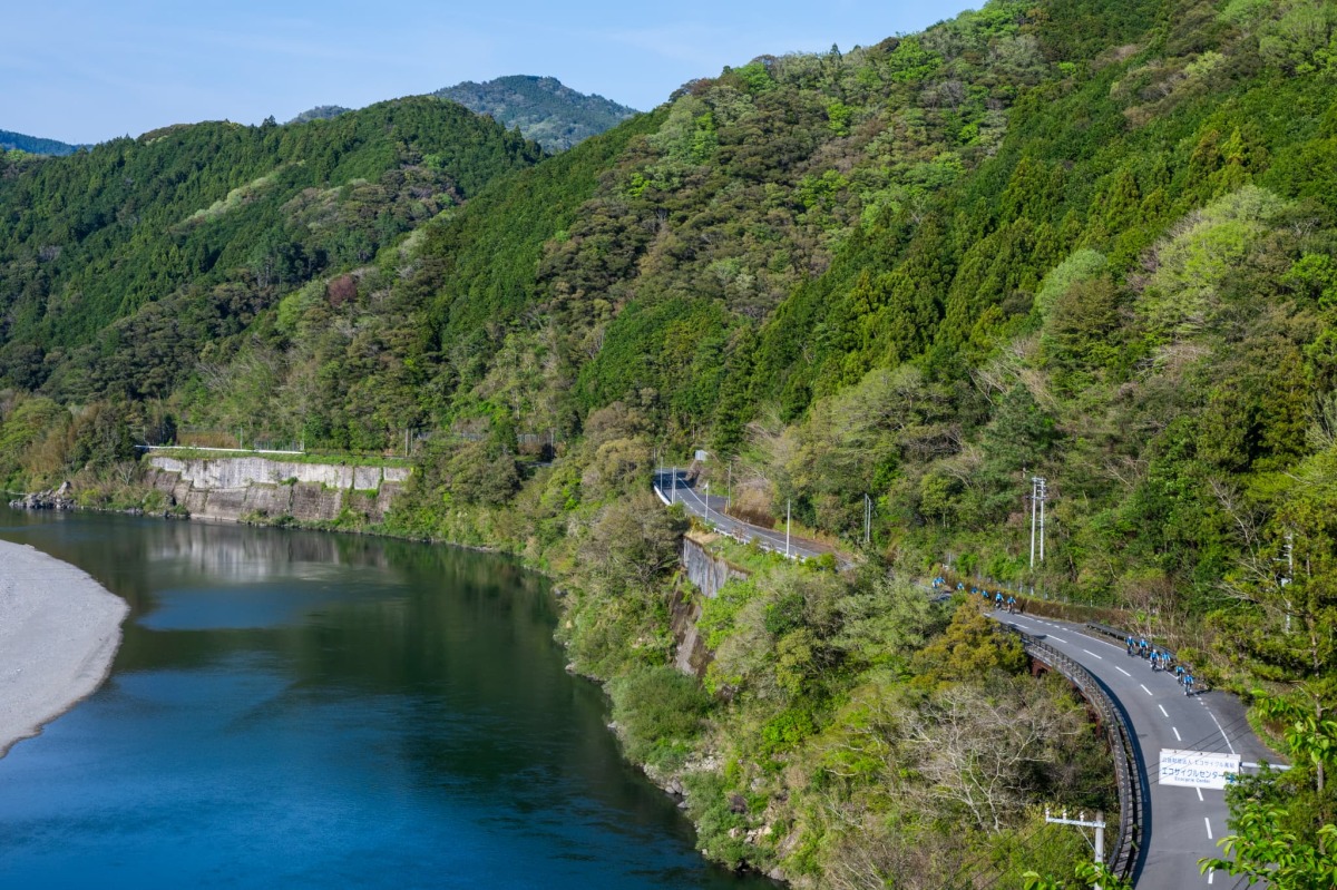 松野町は自然豊かで、四万十バイクレースでも知られるエリア、いっぽう高知県四万十町は「日本最後の清流」と称される四万十川に程近く、今回は国道381号の川沿いコースを検証した。