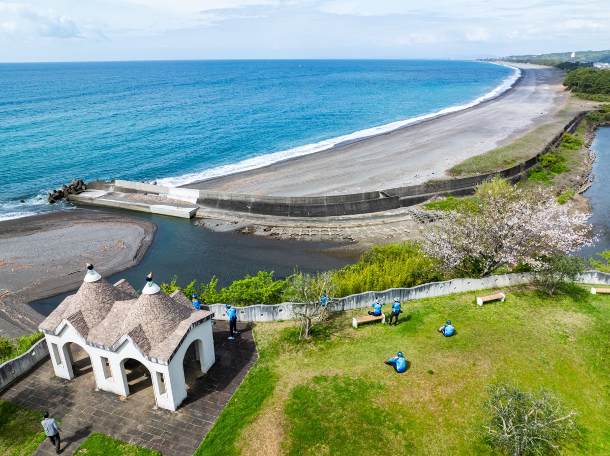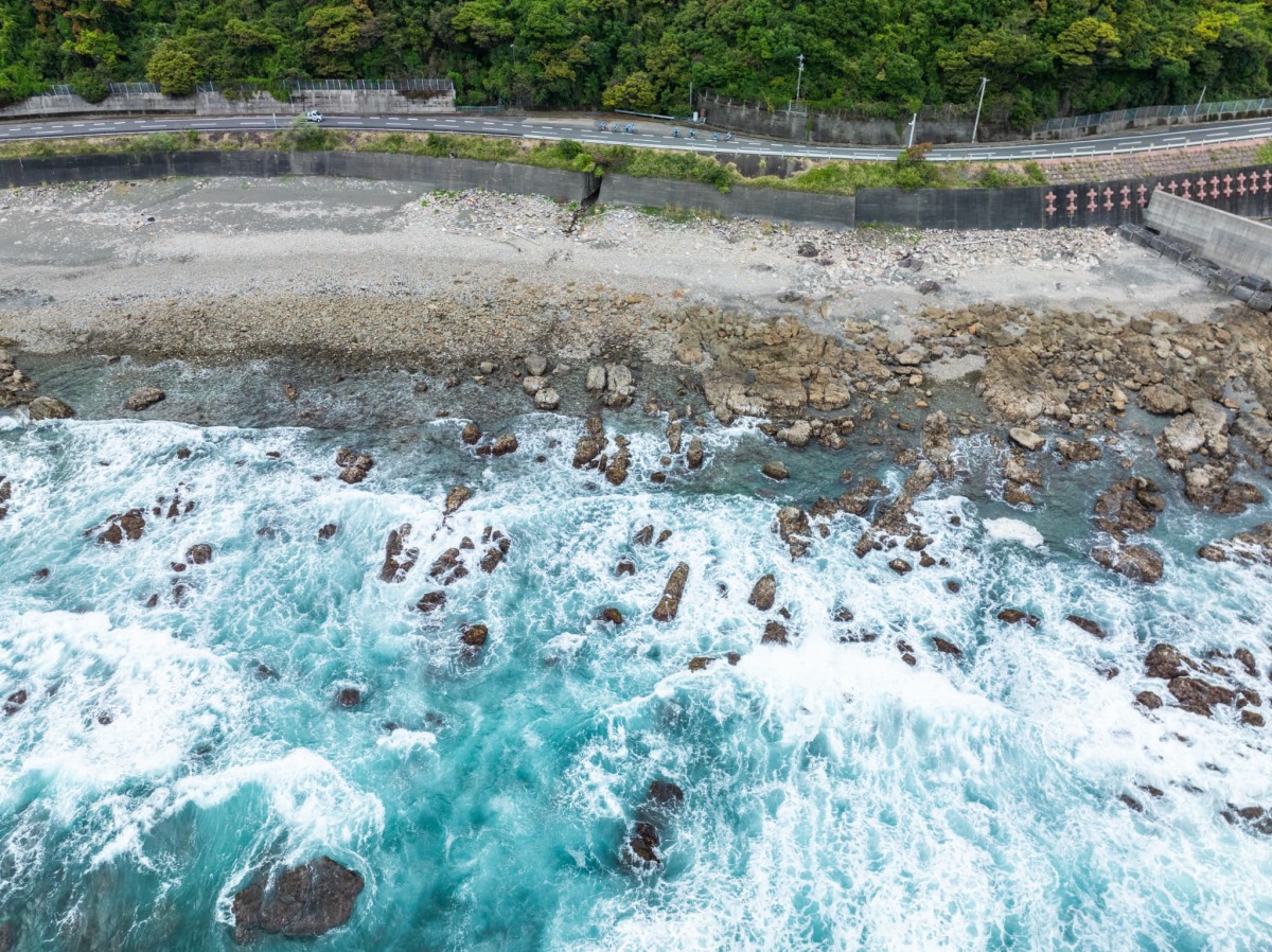 高知県室戸市、キラメッセ室戸から徳島県海陽町の道の駅宍喰温泉まで、海岸線沿いを走る国道55号を41kmを走った。参加者は太平洋沿いを走るためダイナミックな風景が楽しめる。当日は曇り空で強い向かい風のなかを走ったがeバイクのため参加者はあまり負荷を感じなかった。このルートは高知県側の土佐はんなり鉄道の奈半利駅から徳島県側の阿佐海岸鉄道阿佐東線の甲浦駅まで鉄道アクセスがない、さらに商店や自動販売機も少ないエリアなので、ビギナーにとってはサポートがあると安心なコースとなった。