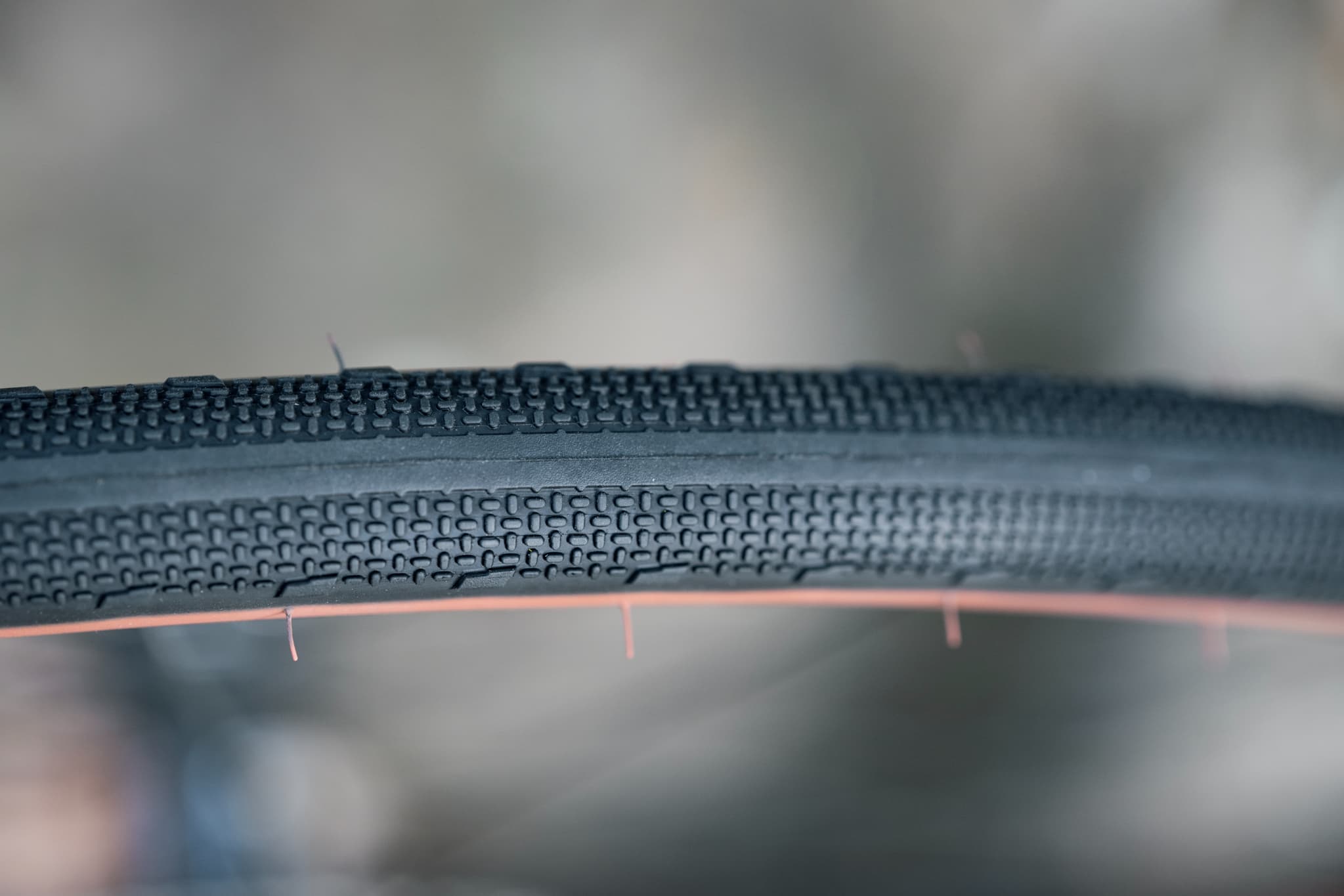 トレッドがロードタイヤ的なスリックなので、転がり抵抗は低く、舗装路では軽快。ケーシングの剛性が高く、指定圧下限でもタイヤに張りがあって潰れにくいため、タイヤの変形量が小さく不快なよれがない。これは、最初からオフロード向けの空気圧にセッティングしておいても舗装路の走りが犠牲にならないということでもある。空気圧を変えても性格が変わりにくいので、1つのセッティングで幅広いライドが楽しめる。