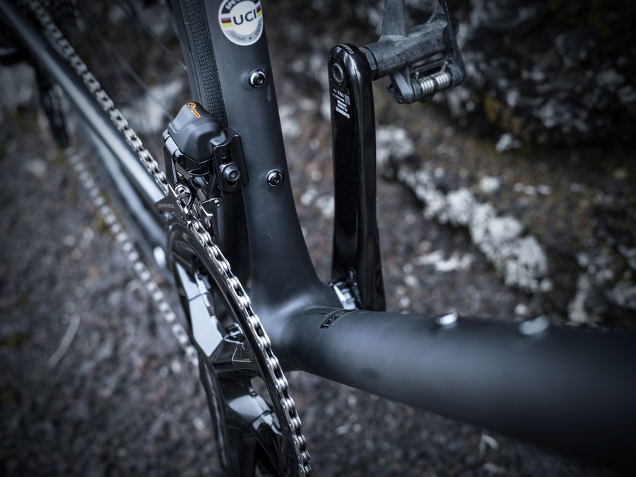 果たしてその走りはシャープであった。踏み出しのその瞬間から前に進ませてくれるような反応の良さがある。ダンシングではバイクが軽すぎて振りの感覚を掴むのに最初は戸惑うが、慣れればいつもより1枚重いギアでグイグイと走りたくなる。