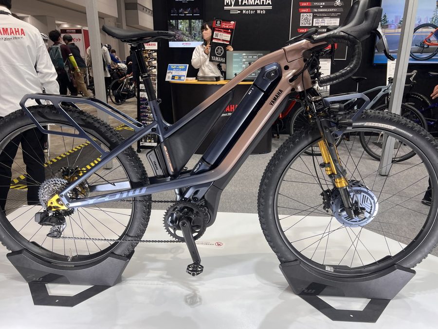 Y00Z MTBというコンセプトモデル。世界初の電動アシスト自転車を登場させたYAMAHAだけに、自社の強みを出せるMTBに独自の技術を全て盛り込んだバイク。モーターを分割式にすることで、BB周りをコンパクトにしてチェーンステイを詰めることを可能にさせた。