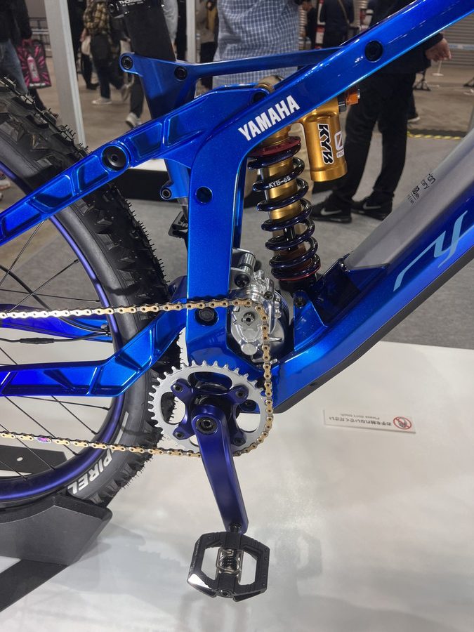 Y00Z MTBというコンセプトモデル。世界初の電動アシスト自転車を登場させたYAMAHAだけに、自社の強みを出せるMTBに独自の技術を全て盛り込んだバイク。モーターを分割式にすることで、BB周りをコンパクトにしてチェーンステイを詰めることを可能にさせた。