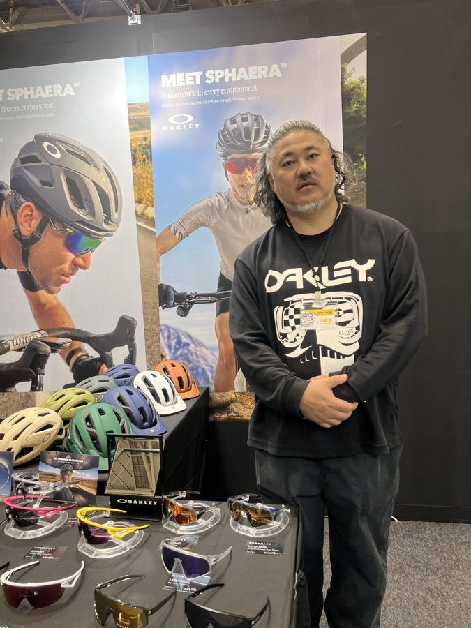 次に個人的にも愛してやまないOAKLEYのブースに駆け込んだ。対応してくれたのは、ほぼ同年代で元ダウンヒラーの福本さんにお話を伺った。