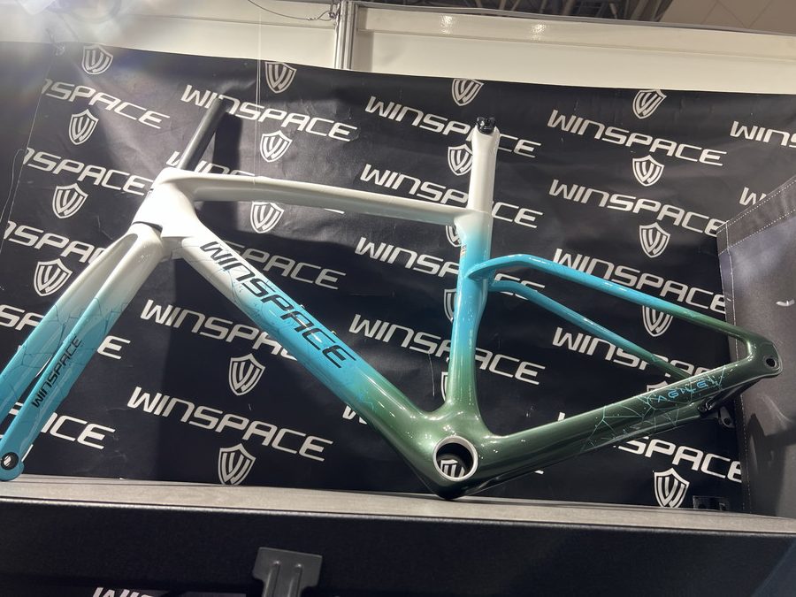 じつは2008年に日本で生まれたWINSPACE、その後中国生産をする中国ブランドに進化した経緯がある。シートステイとシートチューブの接合される造形の美しさ、独自の形状がエアロ効果を高めている。