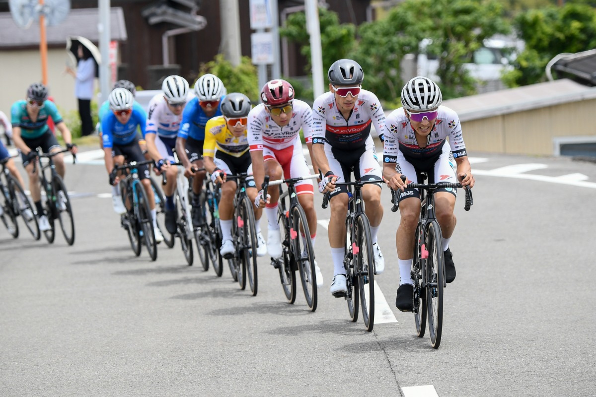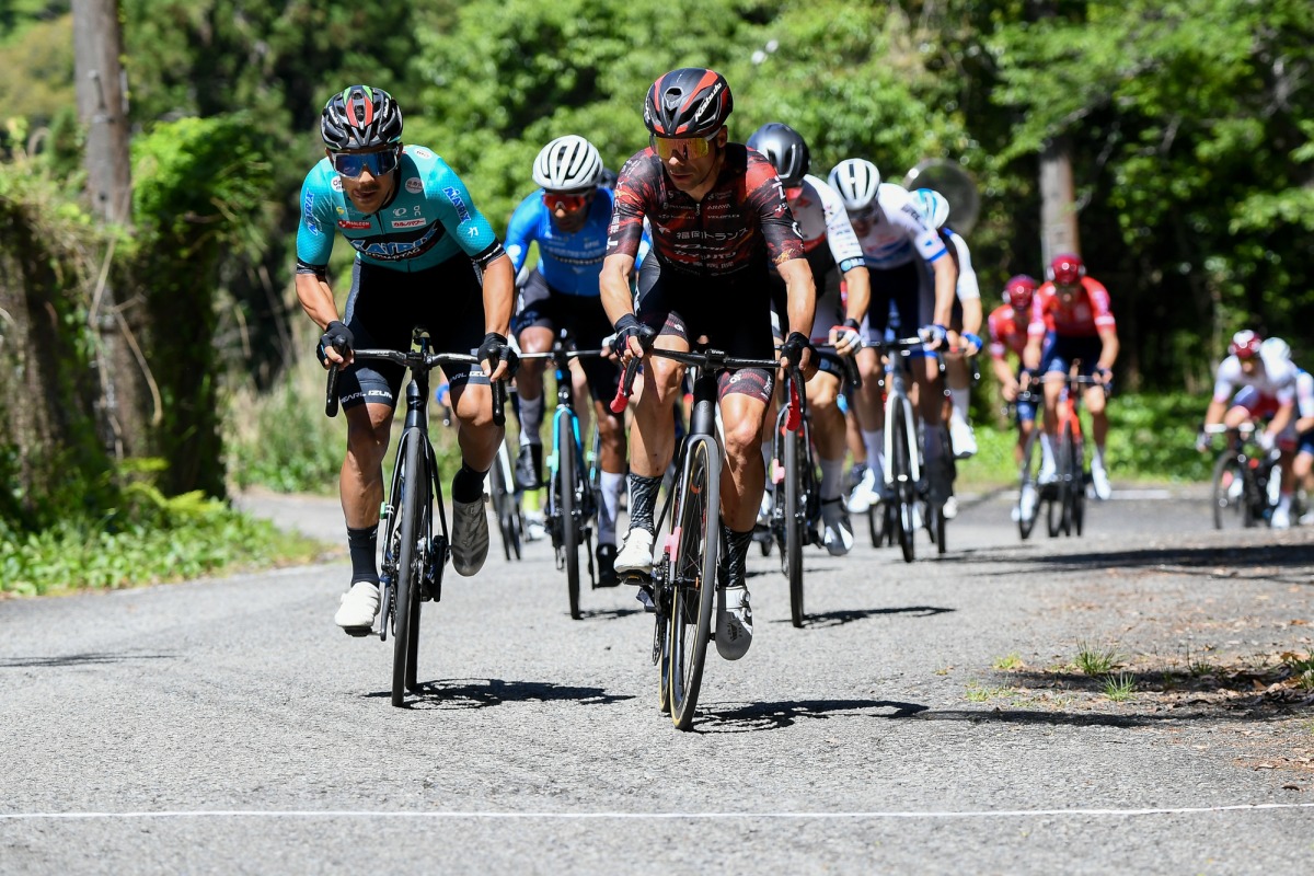 最終周回の千枚田では、クドゥス・メルハウィ・ゲブレメディン(トレンガヌ・サイクリングチーム、エリトリア)が飛び出してトップ通過。続いた小林と共に集団から40秒ほどリードする。これを追った追走グループは既に10名ほどとなるが、JCLチーム右京を中心に追走。