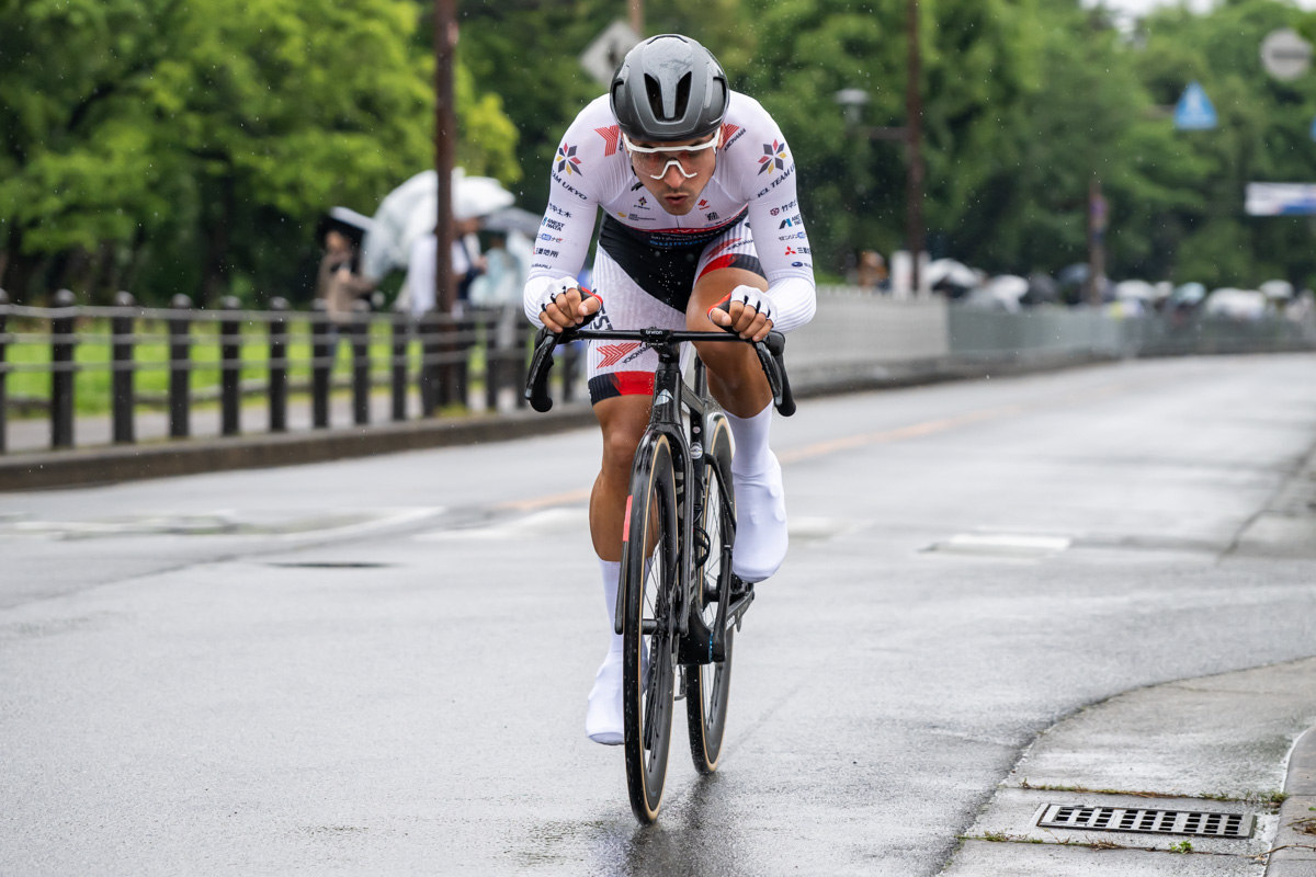 好タイムが出せた秘訣については「午前中に開催されたクリテリウムで、逃げる中で個人タイムトライアルに向けてラインを確認していました。タイムトライアルに近いスピードでクリテリウムを走ることができたのが良かったのかなと思います。」と寺田は教えてくれた。