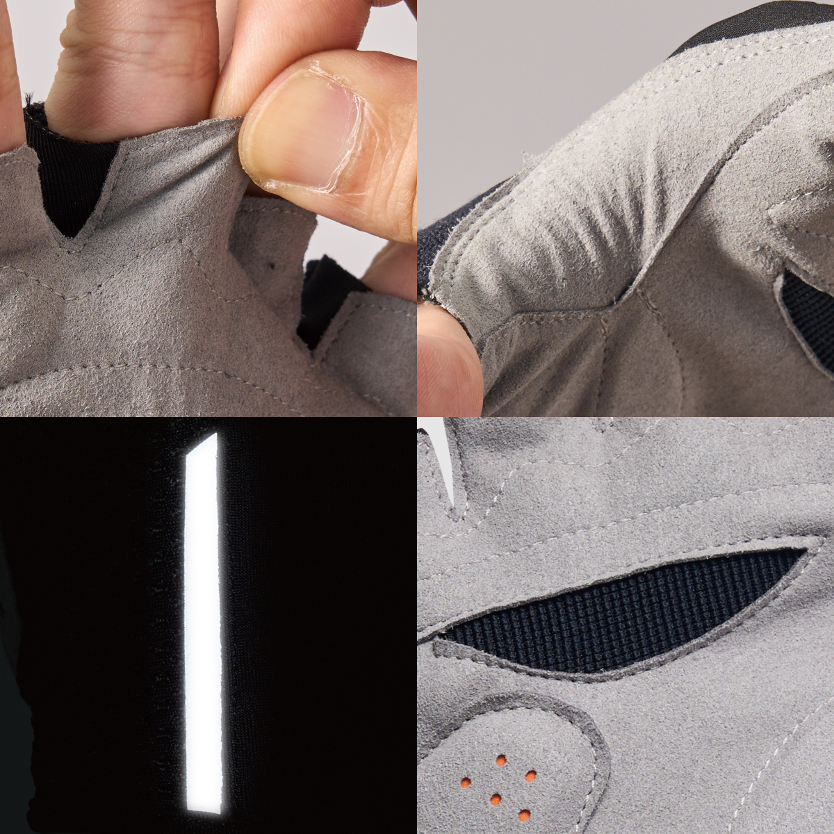 「UV フルフィンガー グローブ」は指先から手首までの日焼けを防いでくれるグローブ。手首部分は日焼けを防ぐため、長めのカフ仕様になっている。さらに手の平部分にはメッシュ生地を配置して蒸れを防ぎ、涼しく快適なライドを提供。ロードバイクハンドルを楽に握れて疲れにくい自転車専用設計で、2層構造の中厚パッドが手の平を痛みから守る。親指と人差し指の指先でタッチパネルの操作が可能だ。